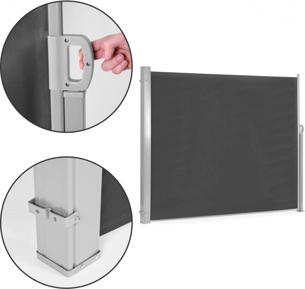 Tato výsuvná boční zástěna představuje chytré a stylové řešení pro venkovní i vnitřní prostory. Vytvoříte s ní soukromou zónu pro relax, ochrání vás před ostrým sluncem a poryvy větru a současně doplní prostor moderním antracitovým vzhledem. Využijete ji na terase, balkonu, u pergoly i jako praktický mobilní předěl v ateliéru či kanceláři.