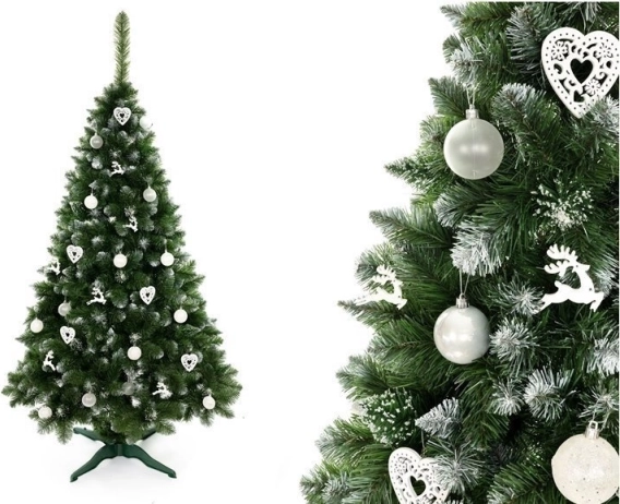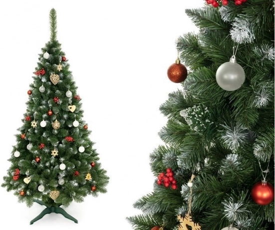 Husté zelené větve s bělavými špičkami věrně napodobují zimní borovici a dodají interiéru autentickou sváteční atmosféru.