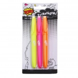 Praktická sada zvýrazňovačů ve třech barvách pro přehledné poznámky a zvýraznění důležitého textu. Nabízí klínový hrot 3 mm pro tenké i široké tahy, kompaktní délku 13,5 cm a 3 výrazné barvy – žlutou, růžovou a oranžovou.