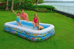 Užijte si spolu s dětmi vodní radovánky přímo na vaší zahradě! Nafukovací bazén s motivem podmořského světa poskytuje dostatek místa pro celou rodinu.