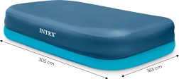 Ochranná plachta na bazén INTEX 58412 je spolehlivé řešení pro každodenní zakrytí obdélníkových bazénů. Udrží vodu bez listí, hmyzu a prachu, takže si koupání užijete s minimální údržbou. Díky pevné vinylové konstrukci je plachta odolná a vhodná pro pravidelné používání u bazénů 305 × 183 cm i 262 × 175 cm.