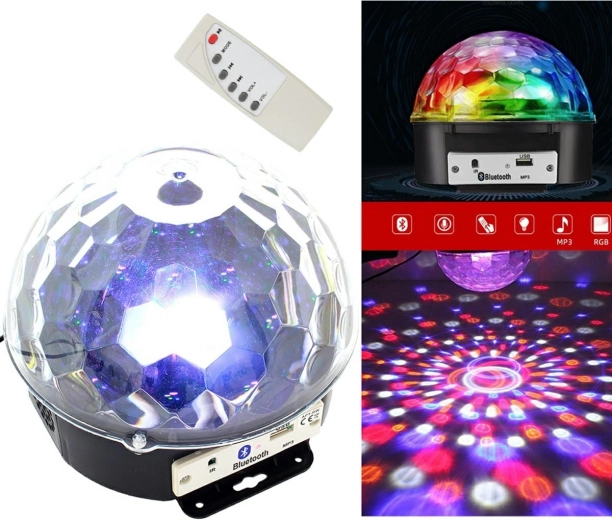 Diskotéková koule se zabudovaným přehrávačem MP3, portem USB a kvalitními stereo reproduktory. Zařízení lze ovládat buď pomocí dálkového ovladače, nebo ze spárovaného zařízení s podporou technologie Bluetooth.