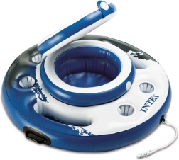 Nafukovací chladicí bar je ideální doplněk k bazénu, na zahradu i k vodě. Díky velkému průměru 89 cm pojme až 24 plechovek nápojů a s ledem udrží vše příjemně vychlazené. Praktická madla usnadní manipulaci na suchu i ve vodě, zatímco vícekomorová konstrukce zajišťuje stabilitu a bezpečnost.