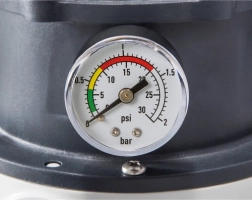 Pěticestný ventil, přehledný manometr a vestavěný časovač pro automatické cykly usnadňují provoz a šetří energii.