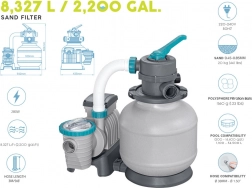 Tato pumpa s výkonem 8327 litrů za hodinu je vhodná pro bazény s kapacitou od 1 100 do 54 500 litrů. Pro provoz vyžaduje č. 20 silca sand (0,45-0,85 mm) nebo vysoce efektivní filtrační kuličky POLYSPHERE.
