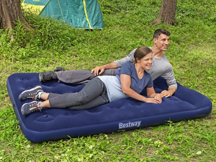 Hledáte univerzální řešení pro hosty, na kempování nebo víkendové výlety? Nafukovací postel BESTWAY Air Mattress Full přináší komfort, stabilitu a snadnou obsluhu v jednom. Odolný materiál s příjemně měkkým, flockovaným povrchem drží prostěradlo na místě a poskytuje pohodlí po celou noc. Integrovaný polštář podporuje hlavu a krk bez nutnosti další výbavy.