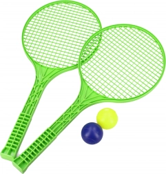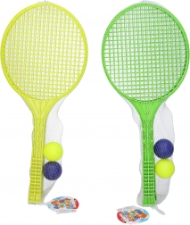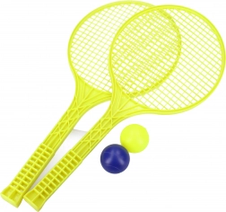 Zábavná sada pro soft tenis vhodná na zahradu i k vodě. Obsahuje 2 rakety o délce 49 cm a 2 měkké míčky pro bezpečné hraní. K dispozici ve 2 barevných variantách – zelená a žlutá.
