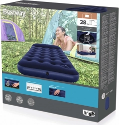 Jednolůžková nafukovací matrace BESTWAY nabízí pohodlné spaní doma i na cestách. Díky pevné konstrukci coil-beam, vestavěné nožní pumpě a integrovanému polštáři se snadno nafukuje a poskytuje stabilní, komfortní oporu. Horní sametově měkký vinyl zvyšuje pohodlí, zatímco dvoucestný ventil umožňuje rychlé nafouknutí i vyfouknutí.