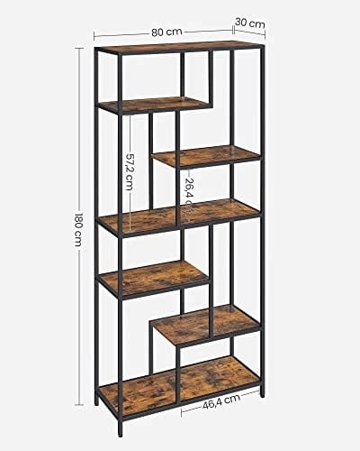 Tato moderní knihovna zaujme průmyslovým (loft) vzhledem a praktickým členěním pro každodenní organizaci. Ocelový rám dodává nábytku pevnost a stabilitu, zatímco rustikální police v teplém odstínu zútulní interiér. Otevřená konstrukce usnadňuje přístup a přehlednost.