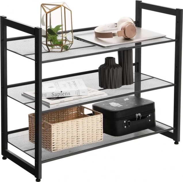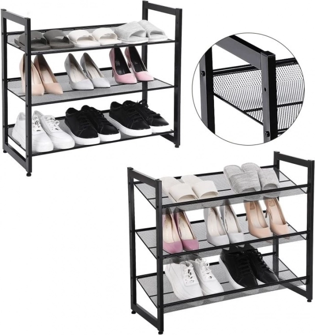 Udržte si doma pořádek s kompaktním a odolným botníkem ze železa. Tři vzdušné police z kovové sítě poskytují přehledné uložení obuvi pro celou rodinu – od dětských botiček až po dospělou obuv. Minimalistická silueta v černé barvě snadno zapadne do vaší předsíně, chodby i šatny.