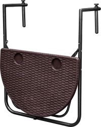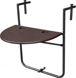 Díky 3stupňovému nastavení výšky si stůl přizpůsobíte svým potřebám. Kdykoli potřebujete více prostoru, jednoduše jej během pár vteřin sklopíte. Instalace je rychlá – stačí zavěsit na zábradlí a dotáhnout svorky. Nastavitelné úchyty pasují na zábradlí šířky 6–14,5 cm.