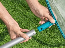 Síťku lze rychle nasadit na běžné teleskopické tyče o průměru 30 mm pro pohodlný dosah po celé ploše bazénu.