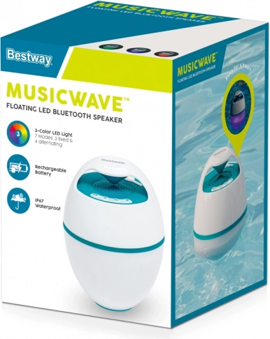 Plovoucí reproduktor Bestway MusicWave™ je vaším dokonalým společníkem pro relaxaci u bazénu. Tento vodotěsný Bluetooth reproduktor nabízí až 6 hodin kvalitní hudby a jeho báječné barevné LED osvětlení vytváří jedinečnou atmosféru.