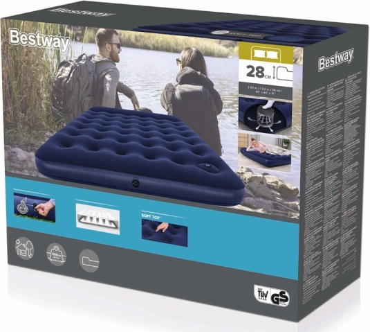 Rozměr 203 × 152 × 28 cm poskytne dostatek místa dvěma dospělým. Měkký vinylový povrch a integrovaný polštář zvyšují pohodlí při spánku i odpočinku.