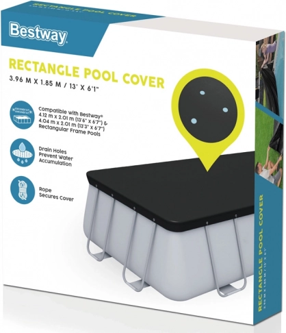 Pokryv na bazén Bestway je navržen pro použití s nadzemními bazény konstrukčními a poskytuje efektivní ochranu před hmyzem, ptáky, listím a lehkým deštěm. Chrání také děti před nechtěným pádem do bazénu.