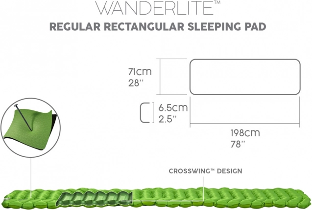 Promyšlená CrossWing konstrukce s nakloněnými vzduchovými komorami udržuje tělo stabilně uprostřed a pomáhá předcházet sklouzávání. Nízkoprofilový ventil zajistí rychlé nafouknutí i vyfouknutí a umožní snadnou regulaci tlaku pro ideální tvrdost podle vašich preferencí.
