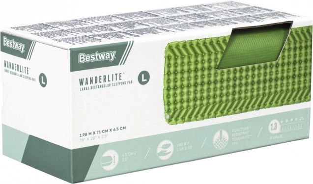 Dopřejte si pohodlný spánek na každém výletu s nafukovací karimatkou BESTWAY WanderLite Large. Nabízí rozměr 198 × 71 × 6,5 cm, hmotnost jen 686 g a kompaktní balení 10 × 10 × 23 cm. Konstrukce CrossWing s nakloněnými vzduchovými kapsami zajišťuje stabilitu a pohodlí, odolné materiály ToughLite a ripstop nylon 70D vydrží náročné použití a nízkoprofilový ventil umožní rychlé nafouknutí, vyfouknutí i přesné doladění tvrdosti. R-hodnota 1.3 je ideální do teplých dnů a letních nocí.