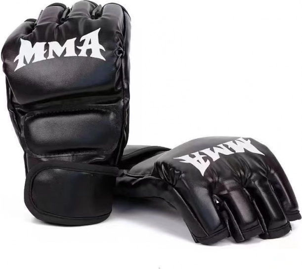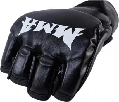 Černé MMA rukavice s nápisem MMA nabízejí maximální ochranu a komfort při tréninku. Odolná syntetická kůže, univerzální velikost a ergonomický střih se stabilizací zápěstí zajišťují jistý úchop, volnost prstů a spolehlivé tlumení úderů pro trénink i sparing.