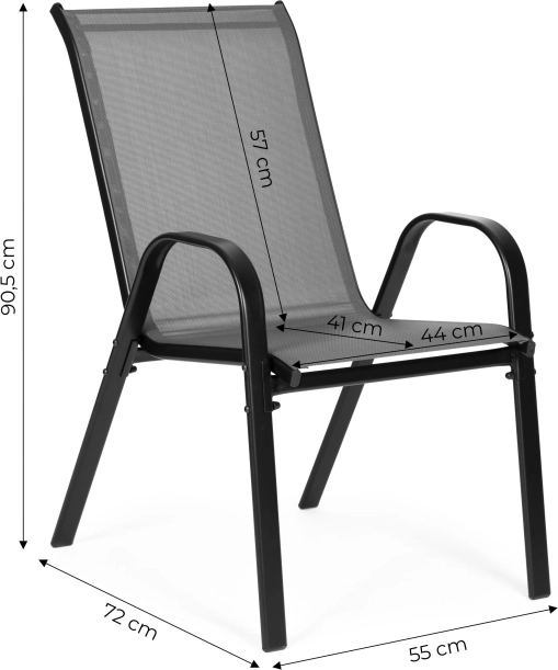 Sedák a opěradlo z textilní síťoviny se přizpůsobí tvaru těla, nabízejí vysoký komfort při sezení a jsou ideální pro venkovní použití.