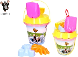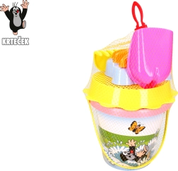 Růžová sada na písek s motivem KRTEČEK potěší každého malého stavitele. Obsahuje kyblík 1,5 l, sítko, lopatku, hrábě a 2 formičky – ideální pro stavění hradů a tvorbu báboviček. Vhodné pro děti od 3 let.