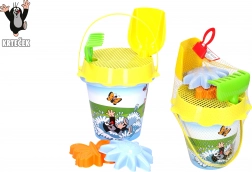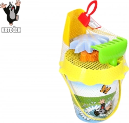 Dětská sada na písek s oblíbeným motivem KRTEK přináší hodiny venkovní zábavy. Obsahuje kyblík 1,5 l, sítko, lopatku, hrábě a 2 formičky – ideální pro stavění hradů a báboviček na hřišti i na pláži. Vhodné pro děti od 3 let.