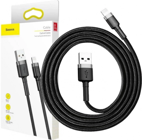Baseus Cafule je spolehlivý kabel pro zařízení Apple s konektorem Lightning. Díky délce 2 m nabízí volnost při používání doma, v kanceláři i na cestách. Podporuje nabíjení proudem 1,5 A a rychlý přenos dat až 480 Mb/s.