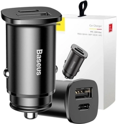 Kompaktní autoadaptér Baseus Square s výkonem 30 W nabízí rychlé nabíjení přes USB-A i USB-C. Podporuje standardy QC 4.0, PD 3.0, Huawei SCP, Samsung AFC a MTK PE, takže spolehlivě dobije telefon, tablet i další zařízení. Kovové tělo, inteligentní řízení napětí a proudu a možnost nabíjení dvou zařízení současně z něj dělají ideální doplněk do každého vozu.