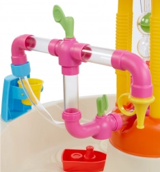Tento odolný vodní stolek je navržen pro děti od 2 let a je vyroben z kvalitních, bezpečných materiálů. Jednoduché vypuštění vody zajistí zátka na dně stolu, takže úklid po hře je otázkou chvilky. Sada barevných trubek, ventilů a mlýnků podporuje smyslové vnímání a učení formou hry.