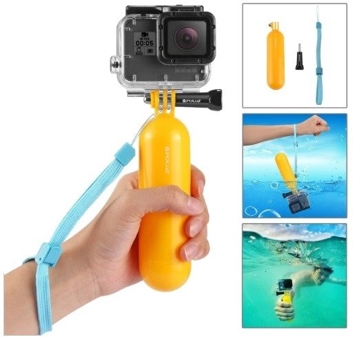 Plovoucí rukojeť s výraznou barvou udrží kameru nad hladinou a zlepší úchop při plavání, šnorchlování či pádlování. Díky popruhu ji bezpečně zajistíte k zápěstí.