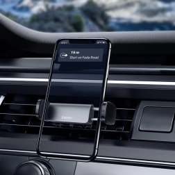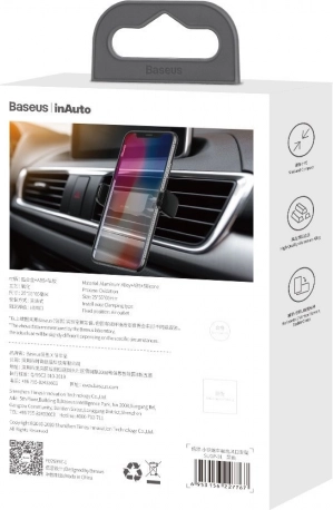 Kompaktní držák do auta BASEUS pro uchycení do větrací mřížky zajistí mimořádně stabilní a bezpečné upevnění telefonu. Díky 360° otáčení snadno nastavíte ideální úhel pro navigaci i hovory, zatímco dvojitá ocelová svorka se silikonem pevně drží v mřížce a chrání ji před poškrábáním. Kompatibilní s telefony šířky 55–84 mm.