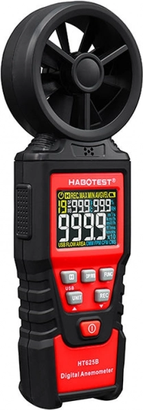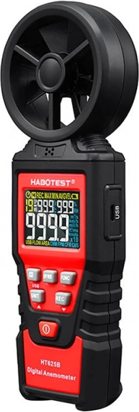 HABOTEST HT625B je spolehlivý anemometr s osmilistým rotorem a citlivým snímačem ložisek pro stabilní a rychlá měření. Barevný displej s vysokým rozlišením zobrazuje hodnoty až do 9999 countů, včetně indikace baterie. Volit můžete z více jednotek rychlosti (m/s, km/h, mph, ft/s, uzly) i objemu vzduchu (CFM/CMM/CMS), takže si přístroj snadno přizpůsobíte svým pracovním návykům.