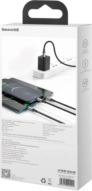 Kabel Baseus vám pomůže efektivně nabíjet zařízení jako iPhone, Android smartphony a další, vše najednou, což ušetří čas. Opletený nylonový plášť zajišťuje odolnost vůči ohýbání, poškrábání a přerušení. Navíc má speciální suchý zip pro snadné skladování bez zamotání.