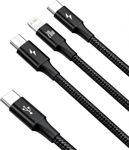 Tento praktický kabel značky Baseus umožňuje napájet až 3 zařízení současně. Kompatibilní s širokou škálou zařízení díky konektorům Lightning, USB-C a Micro USB, poskytuje rychlé nabíjení až 20W. Rychlost přenosu dat dosahuje až 480 MB/s, což z něj činí ideální řešení pro moderní životní styl.