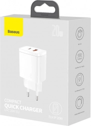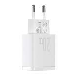 Kompaktní nabíječka Baseus s výkonem 20 W nabízí rychlé standardy PD 3.0 a QC 3.0, dva porty USB‑C a USB‑A pro současné nabíjení, inteligentní ochrany a odolné tělo z PC. Ideální domů, do kanceláře i na cesty.