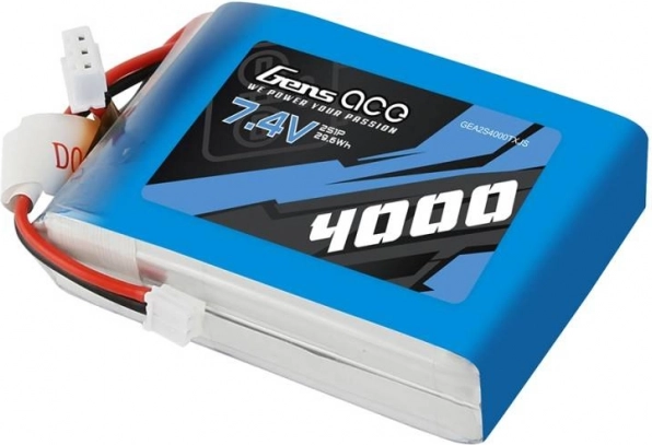 Lehká a spolehlivá LiPo baterie Gens Ace s kapacitou 4000 mAh a napětím 7,4 V nabízí stabilní výkon, dlouhou výdrž a bezpečný provoz pro RC zařízení a vysílače. Díky nízkému vybíjecímu proudu 1C je ideální pro aplikace vyžadující dlouhou provozní dobu a spolehlivost.