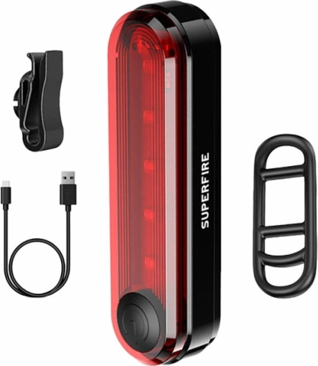 Mějte klid na cestách s zadním světlem Superfire, které je navrženo pro maximální viditelnost. Čtyři různé režimy světla vám umožní přizpůsobit jas podle vlastních potřeb. Díky USB nabíjení je rychle připraveno k použití a odolnost IP44 zajišťuje odolnost proti dešti.