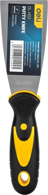 Univerzální nerezová stěrka na tmel o šířce 50 mm od Deli Tools pro renovace a malířské práce. Odolná proti korozi, pružná čepel a komfortní rukojeť s otvorem pro zavěšení usnadní tmelení, škrabání i vyrovnávání povrchů.