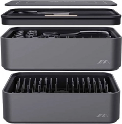 Univerzální a kompaktní 100dílná sada precizních šroubováků JIMI HOME je ideální pro opravy elektroniky, počítačů a mobilních telefonů i pro drobné domácí práce. Nabízí magnetickou podložku pro bezpečné třídění drobných součástek, ráčnový klíč a rukojeť šroubováku s bohatou škálou bitů a nástavců, a také magnetizér/demagnetizér pro maximální pohodlí při práci.