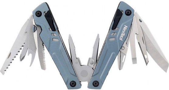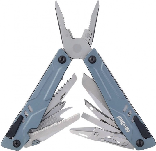 Multinástroj Nextool obsahuje 15 různých nástrojů včetně jehlových kleští, pilky na dřevo a otvíráku na lahve.