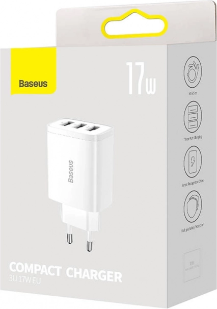 Hledáte univerzální nabíječku pro telefon, sluchátka i další elektroniku? Tento kompaktní adaptér BASEUS kombinuje výkon 17 W s trojitým USB výstupem, takže pohodlně nabijete až tři zařízení současně. Integrovaný čip automaticky rozpozná připojenou elektroniku a zvolí optimální proud pro rychlé a šetrné doplnění energie.