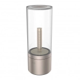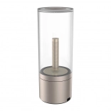 Ovládání je intuitivní: otáčením horní části regulujete jas, přepínačem na základně zvolíte režim plamene nebo stálé světlo. Vestavěná baterie 2500 mAh vydrží až 100 hodin při nejnižším jasu (cca 9,5 h na nejvyšší), nabíjení probíhá přes USB‑C. Minimalistické provedení se skleněným tělem a kovovými akcenty se hodí do každého interiéru.