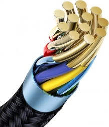 Kvalitní měděné vodiče umožňují nabíjení až 3 A a současný přenos dat rychlostí až 480 Mb/s.