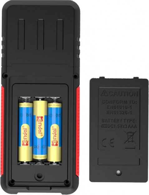 Odolná konstrukce: Přístroj je vyroben z plastu ABS, což mu dodává odolnost proti pádům, prachu a vodě. Ergonomický design zajišťuje pohodlné používání a speciální kryt chrání měřicí hroty před poškozením.