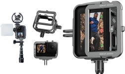 Promyšlená konstrukce umožňuje rychlé připojení napájení díky otevíratelné bočnici a pohodlné použití Max Lens či ND filtrů. Součástí je vertikální adaptér pro okamžité přepnutí do portrétu – ideální pro sociální sítě.