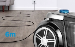 Štěrbinová hubice, kartáč na čalounění a kulatý kartáč pokryjí úklid úzkých mezer, nábytku i jemných povrchů. Teleskopická trubice a 1,5m hadice prodlouží dosah.