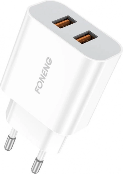 Nabíjejte dvě zařízení současně díky kompaktní nabíječce FONENG s výkonem 12 W a dvěma porty USB. Široký vstup 100–240 V je ideální na cesty, inteligentní čip chrání před přehřátím, přebitím i zkratem. V balení je Micro USB kabel pro okamžité použití.
