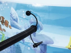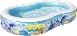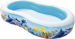 Užijte si léto s prostorným nafukovacím bazénem BESTWAY s motivem oceánu. Díky oválnému tvaru, širokým stěnám a stabilní komorové konstrukci je ideální pro bezpečné vodní radovánky dětí. Vyroben z odolného vinylu, nabízí rychlé vypuštění a snadné skladování.