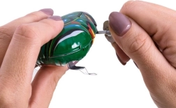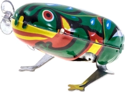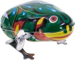 Tato roztomilá hračková žabka je vyrobena z kovu v krásné zelené barvě a je poháněna pružinovým mechanismem, který se natahuje klíčkem. Žabka přináší úsměv na tvář všem generacím. Díky malým rozměrům se snadno vejde do dětské ruky a je perfektní pro vtipné momenty, když je například ukrytá v kabelce. Ujistěte se, že ji máte jako talisman pro štěstí!
