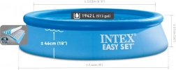 Klasika mezi nadzemními bazény. Intex Easy Set se vyznačuje rychlou a snadnou montáží díky nafukovacímu hornímu límci. Stačí jej nafouknout a stoupající sloup vody bazén sám postaví.