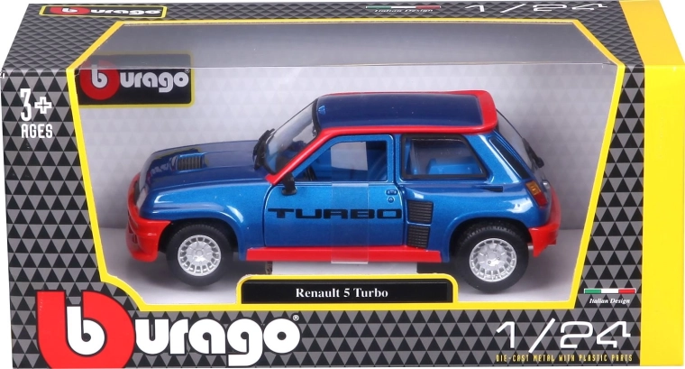 Rozšiřte svou sbírku o ikonický rally hatchback Renault 5 Turbo v měřítku 1:24. Tento detailně zpracovaný model od Bburago nabízí realistické proporce, otevírací dveře, volně se otáčející kola a autentické prvky karoserie. Ideální pro sběratele i děti, které ocení precizní detaily, kovové provedení a sportovní design s nápisem TURBO.